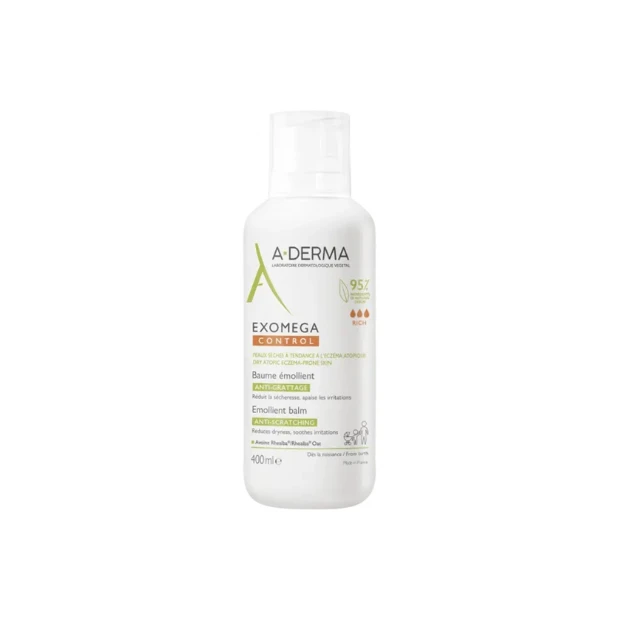 A-DERMA Exomega Control Baume Émollient Anti-Grattage 400 ml est un baume à la texture extrêmement riche indiqué pour les peaux sèches à tendance à l’eczéma atopique de toute la famille.