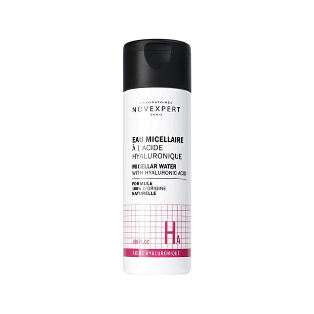 Réponses de l’Eau Micellaire Novexpert : côté pile, une formule 100% d’origine naturelle et hypoallergénique, côté face, une formule gorgée d’acide hyaluronique. Un nettoyant, un démaquillant (visage & yeux), et un soin revitalisant à part entière !
