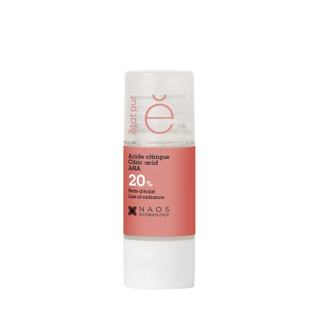 Etat Pur Acide Citrique 26% 15 ml est un soin qui contient une des plus hautes concentrations d’acide citrique (AHA acide de fruit issu du citron) pour resserrer les pores dilatés, exfolier la peau et la rendre plus éclatante en quelques jours.