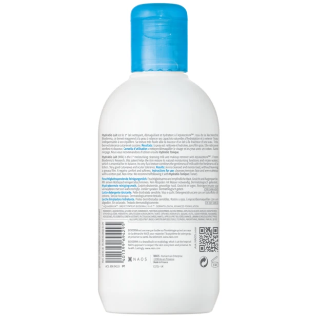 Hydrabio Lait démaquillant hydratant élimine efficacement et en douceur le maquillage et les impuretés. Conçu pour les peaux sensibles déshydratées, ce soin apporte hydratation et douceur.