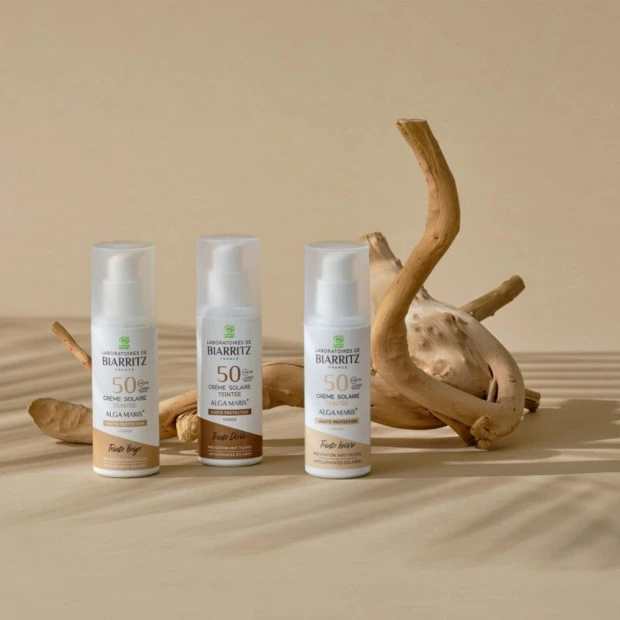 La crème teintée certifiée bio protège immédiatement des rayonnements UVA/UVB et de la lumière bleue¹ grâce à l’association unique d’écrans minéraux et d’Alga-Gorria®, un extrait antioxydant breveté d’algue rouge issue de la côte basque, qui prévient notamment le vieillissement cutané.