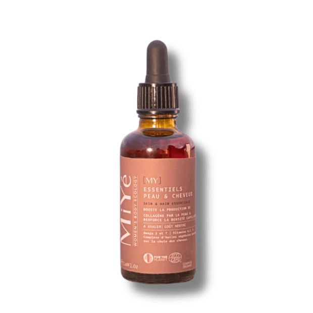 – L’huile d’Algues, riche en oméga 3 (EPA/DHA), apporte le dosage indispensable pour maintenir un bon ratio oméga 6/oméga 3. Les oméga 3 contribuent à une bonne synthèse des hormones, à maintenir un bon équilibre mental et nerveux et à diminuer l’inflammation. Ils ont également un rôle protecteur contre la sécheresse des muqueuses (yeux, zone intime, cuir chevelu), la microcirculation du cuir chevelu et la croissance des ongles.