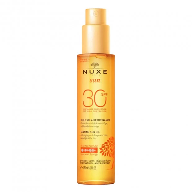 Nuxe Sun Huile Solaire Bronzante Visage et Corps SPF30 150 ml est une protection cellulaire anti-âge conçue pour sublimer le bronzage de toutes les peaux.