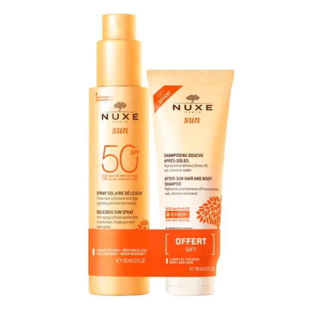 Nuxe Sun Spray Solaire Délicieux SPF50 150 ml est une protection cellulaire anti-âge qui hydrate, prévient les taches.