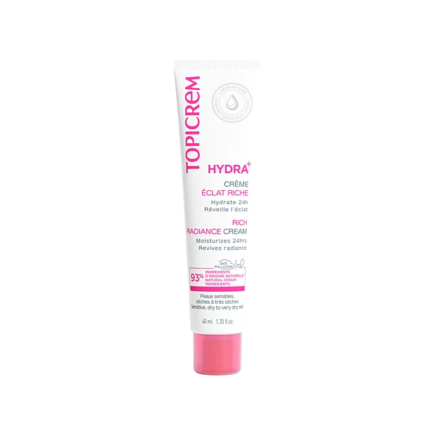 Topicrem HYDRA+ Crème Hydratante Éclat Riche 40 ml est un soin du visage destiné aux peaux sensibles sèches à très sèches.