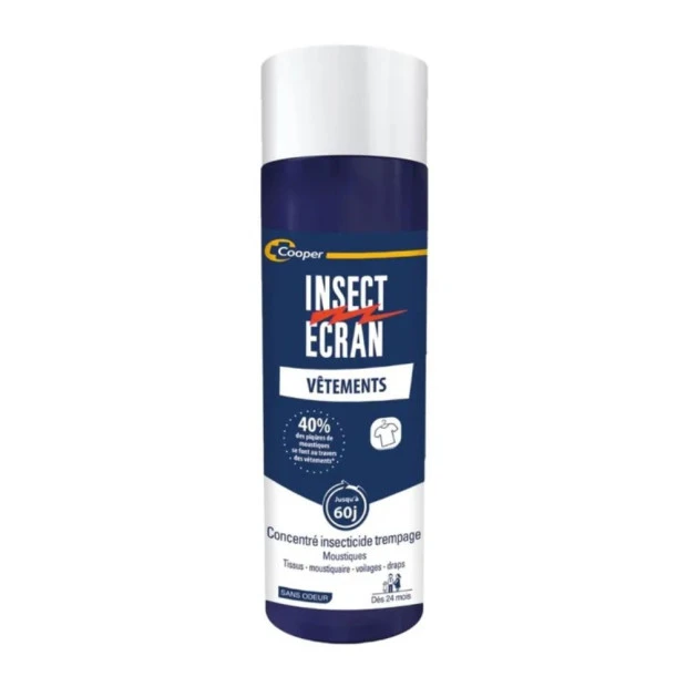 Insect Ecran Vêtements Concentré Insecticide Trempage 200 ml est une solution insecticide à large spectre permettant d’imprégner vêtements et et tissus afin de vous protéger efficacement contre les insectes.